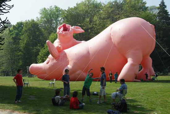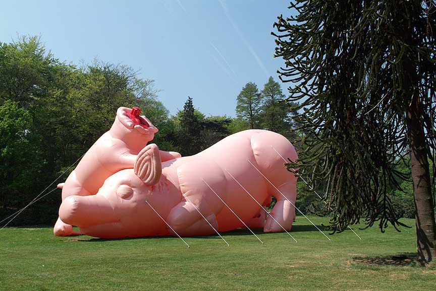 | Paul McCarthy, Piggies, 2007 Inflatable Sculpture, Installation view, Middleheim Sculpture Museum, Antwerp, Belgium | |