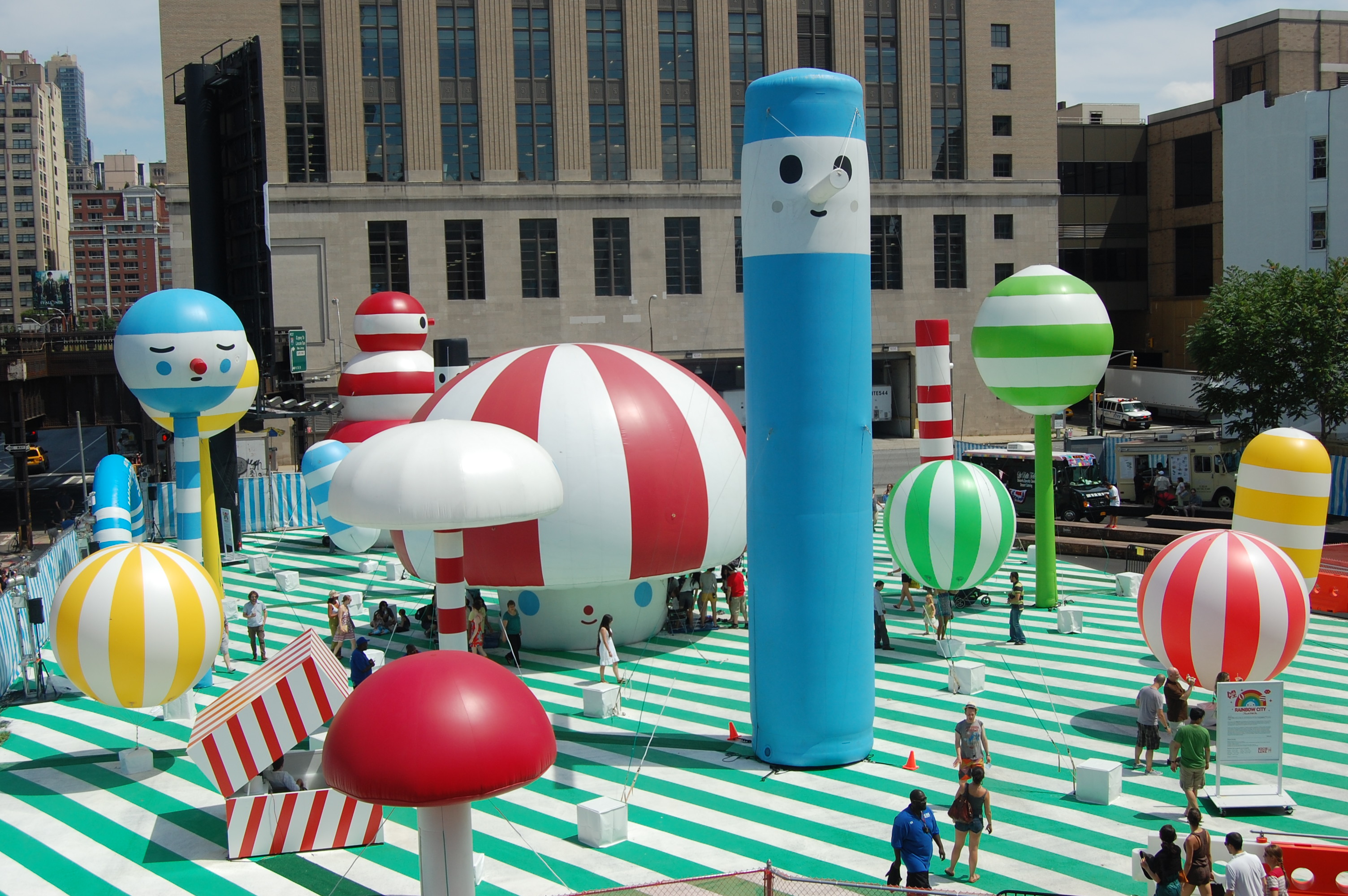 | inflatable sculpture installation by Friends With You, a two man art collective from Miami. Rainbow City was located by the newly opened section of the High Line on 30th St. and 10th Ave, 2012 | |