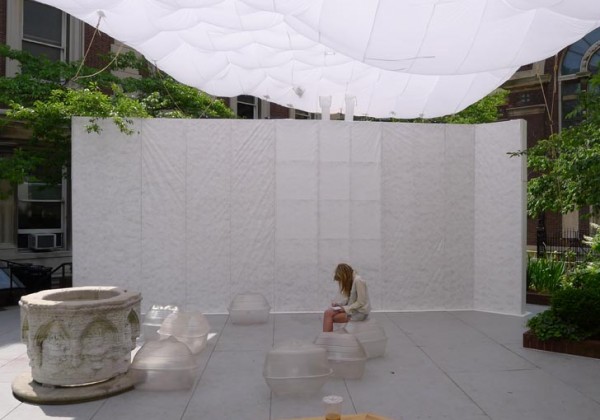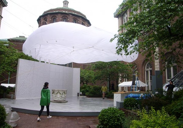 | BOB, an inflatable cloud above a public bathroom and forum, is the result of a pedagogical experiment involving graduate art and architecture students at Columbia University. Jan. 2012 | |