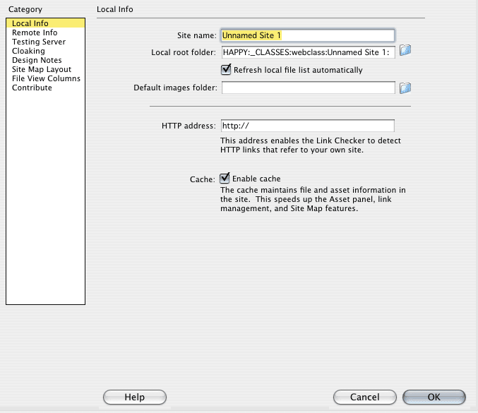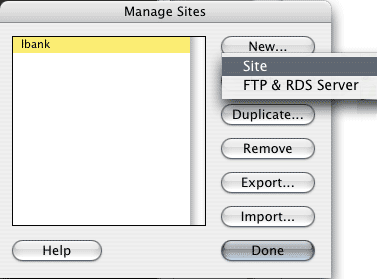 *if you have your FTP info and want to use Dreamweaver to upload your files, then: select the "Remote Info: tab if you want to set FTP info. In the "access" pull down, select FTP and enter in your ftp info.