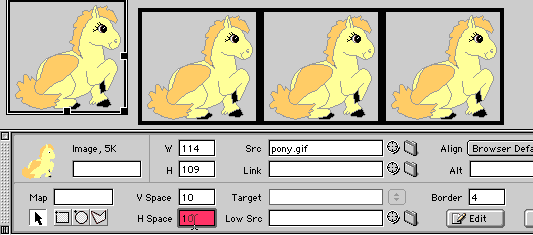 2. In the Properties Inspector put a number into the HSpace or VSpace text field.