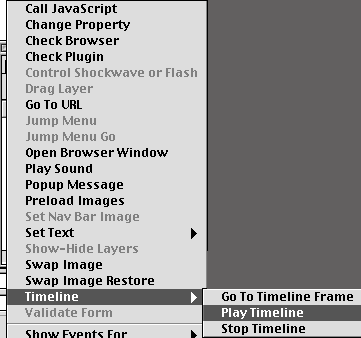 4. Select the event (onMouseDown for example) that will trigger the timeline to play.