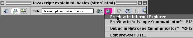 1. Select the world Icon and pull down to a browser in the top of the document window.