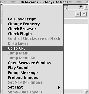 5. In the Behaviors Panel select an event from the pull down (ex. onMouseDown)