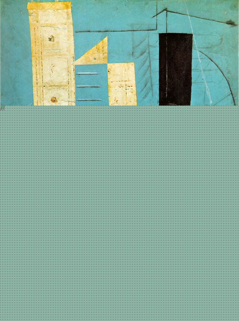 Cubism. Abstraction through a formal system. Flattening of space even further.