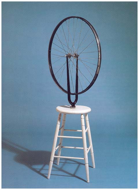 In 1913 I had the happy idea to fasten a bicycle wheel to a kitchen stool and watch it turn. In New York in 1915 I bought at a hardware store a snow shovel on which I wrote: "In advance of the broken arm." It was at that time that the word "ready-made" came to mind to designate this form of manifestation.